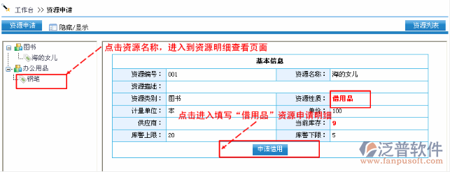 點擊【申請借用】進入填寫“借用品”資產(chǎn)申請明細,如圖: