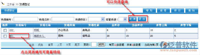 對資產(chǎn)的申請審批人員,以及對資產(chǎn)的名稱、參數(shù)、庫警上限、庫警下限等進行設置。并可以查詢到資產(chǎn)的庫存量、資產(chǎn)是否已經(jīng)達到庫警線等等。