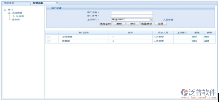 輸入部門名稱及序號,點擊“保存按鈕”,保存部門信息。
