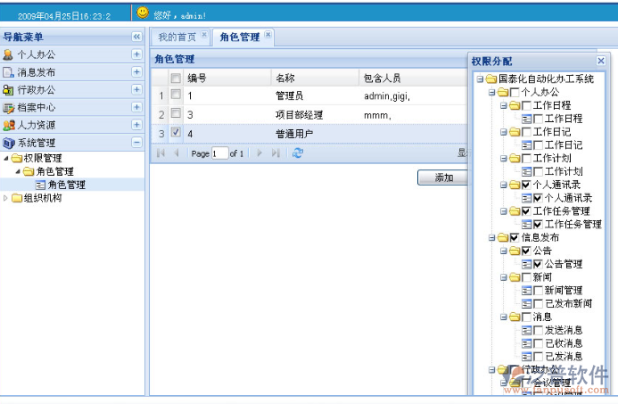 OA由個(gè)人辦公、公共服務(wù)、公文流轉(zhuǎn)、系統(tǒng)設(shè)置等多個(gè)大的功能模塊所組成。不同的用戶 擁有不同的操作權(quán)限。OA的管理員擁有最高的管理權(quán)限,他負(fù)責(zé)根據(jù)用戶的職位和權(quán)利分配給不同用戶不同的使用權(quán)限。OA對(duì)用戶的數(shù)量不做限制,管理員可以根據(jù)企業(yè)的需要進(jìn)行添加。