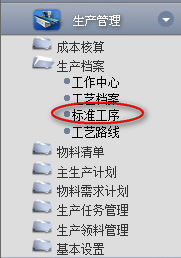 1.點(diǎn)擊辦公模式→生產(chǎn)管理→生產(chǎn)檔案→標(biāo)準(zhǔn)工序,進(jìn)入“標(biāo)準(zhǔn)工序”窗口: