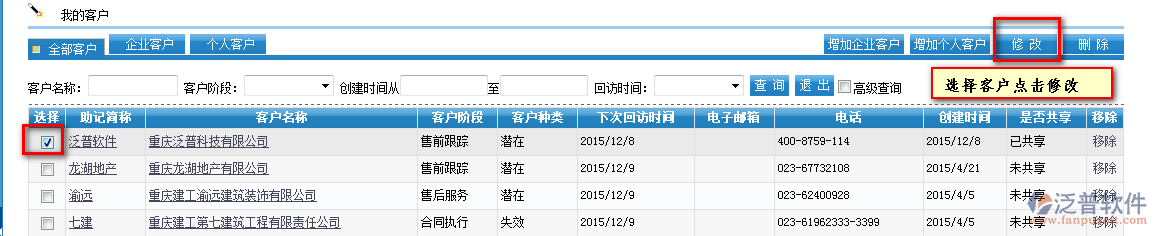 2、如果新建了客戶當(dāng)時沒有共享,后期可以通過修改共享人員來實現(xiàn)(操作上是類似的,只是進入方法不一樣)