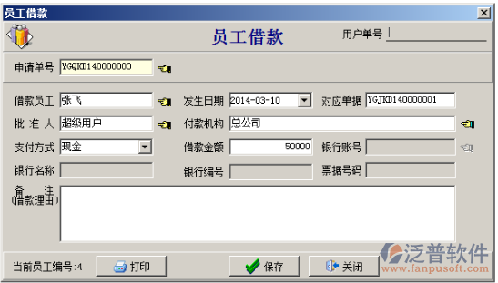 員工請款單可以開啟使用多級審核,審核之后執(zhí)行付款,生成員工借款單,保存