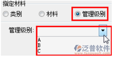 首先選擇“管理級別”,從“管理級別”下拉菜單中選擇材料級別,默認為所有材料級別。材料的管理級別在材料字典里設置。