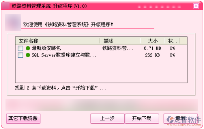點(diǎn)擊[其它下載資源],軟件列出可以下載的資源,選擇需要下載的文件,點(diǎn)擊[開(kāi)始下載] 按鈕,選擇新下載文件的存放路徑就可以了。如圖2.3.9。