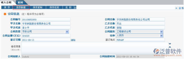 1.添加收入合同數(shù)據(jù)