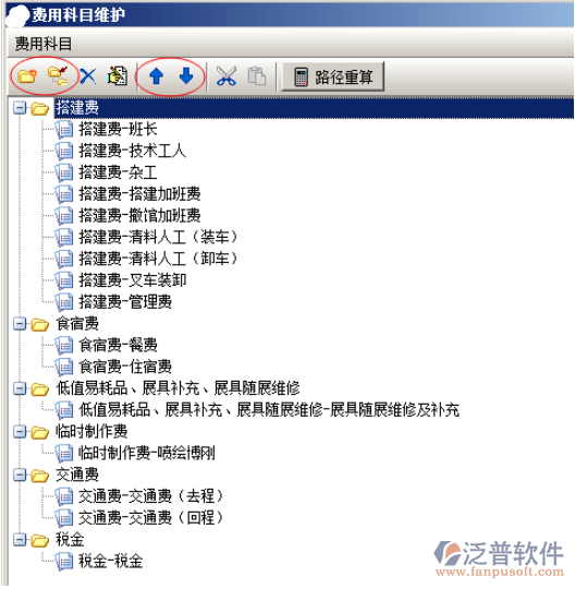 使用左上角圖標(biāo)按鈕,創(chuàng)建費(fèi)用科目,第一個(gè)按鈕的意思是新建平級科目,第二個(gè)按鈕是新建子級科目,按上下的箭頭可以調(diào)整上下位置,后面剪刀與文件代表的是復(fù)制與粘貼。