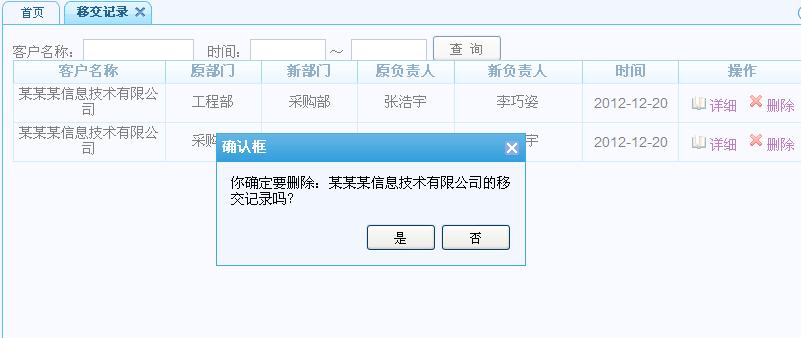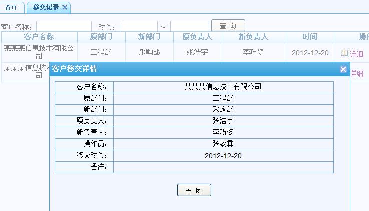 點擊操作區(qū)“詳情”,可查看移交部門、移交人以及具體移交時間。