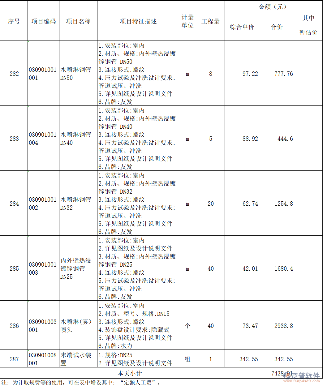 283 030901001004 水噴淋鋼管 DN40 "1.安裝部位:室內(nèi)