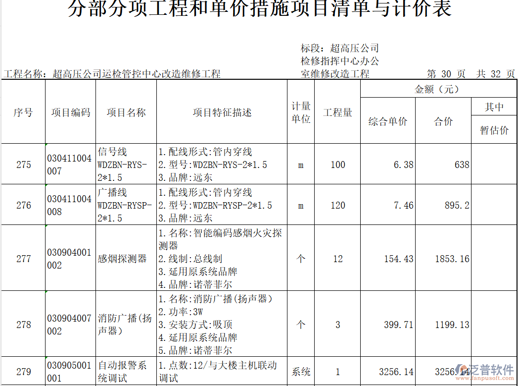 279 030905001001 自動(dòng)報(bào)警系統(tǒng)調(diào)試 1.點(diǎn)數(shù):12/與大樓主機(jī)聯(lián)動(dòng)調(diào)試 系統(tǒng) 1