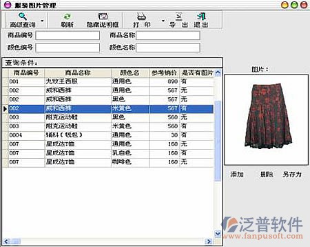 1、任意組合服裝的顏色尺碼模式, 商品采用含顏色、尺碼的二維表管理。所有的單據(jù)均是二維錄入數(shù)量。 2、每一款與顏色有相應(yīng)圖片管理。