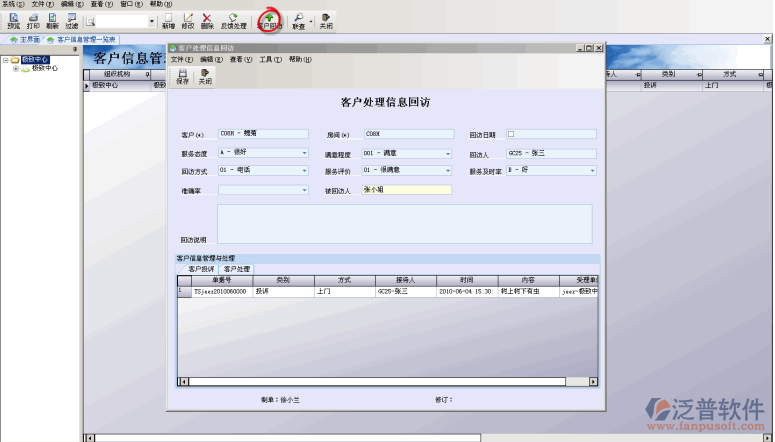 擊【客戶回訪】,出現(xiàn)下圖: