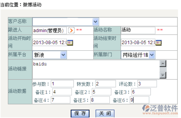 2、輸入客戶名稱,活動名稱,活動開始時間等。點擊保存即可。