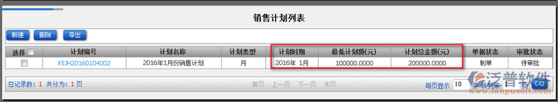 5、系統(tǒng)為用戶提供【導(dǎo)出】功能。選中需要導(dǎo)出的銷售計劃,點擊【導(dǎo)出】即可。如圖:
