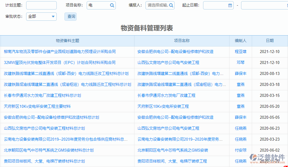泛普軟件電力工程備料計(jì)劃的管理必須堅(jiān)持“及時(shí)、完整、準(zhǔn)確、統(tǒng)一規(guī)范和動(dòng)態(tài)管理”的基本原則.
