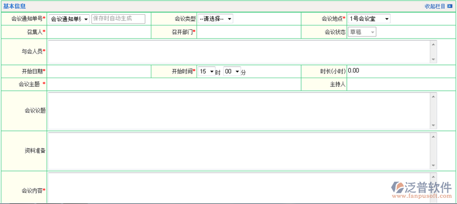 當(dāng)前位置:工程項(xiàng)目OA系統(tǒng) > ERP系統(tǒng) > 功能詳情 > 行政管理 > 會(huì)議管理