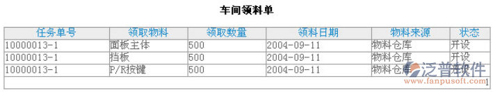 領(lǐng)料記錄:用戶錄入車間領(lǐng)料單后,系統(tǒng)會根據(jù)領(lǐng)料來源自動開具生產(chǎn)領(lǐng)料單(傳遞到倉庫部門)或者是從其它車間領(lǐng)料。