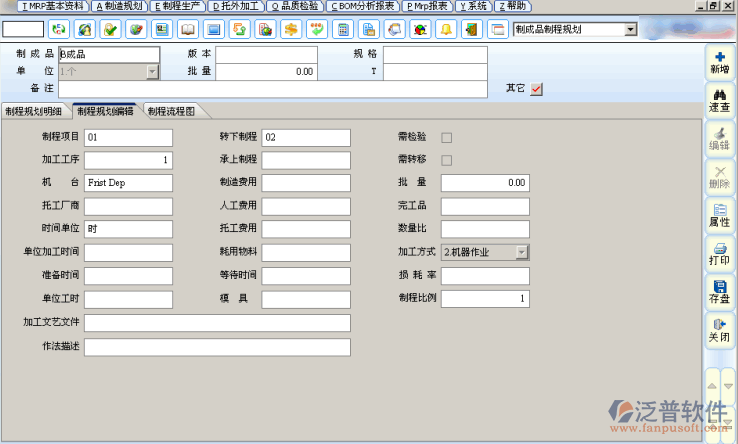 在系統(tǒng)中制成品制程規(guī)劃設(shè)定的意義是設(shè)定成品或半成品的加工工藝路線和每道工序所需的單件加工時(shí)間。只有設(shè)置了貨品的單件加工時(shí)間,我們才可以得出訂單或計(jì)劃生產(chǎn)單所需的標(biāo)準(zhǔn)時(shí)間,進(jìn)一步為企業(yè)的生產(chǎn)計(jì)劃和采購(gòu)計(jì)劃提供科學(xué)的依據(jù)。