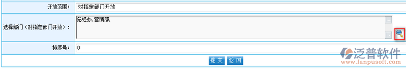 對指定部門開放,點擊【放大鏡】可選擇對不同的部門進行賦權。如圖: