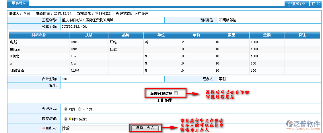 提交完畢進(jìn)入材料預(yù)算審批,進(jìn)入【項(xiàng)目管理】—【審批中心】—【材料預(yù)算】