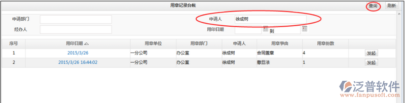 用章記錄臺(tái)帳是系統(tǒng)使用人員用來(lái)查看用章信息的,作為用章管理查詢作用。