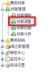 1、首先登陸OA系統(tǒng)——【費(fèi)用預(yù)算】——【預(yù)算管理】——【預(yù)算調(diào)整】