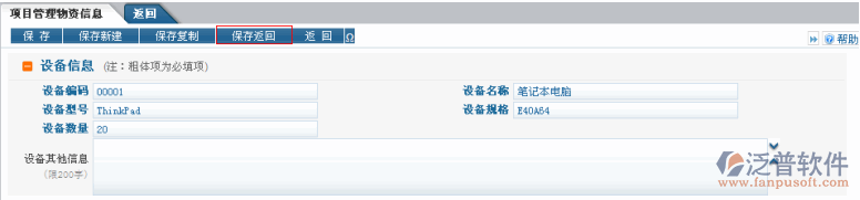 保存了數(shù)據(jù)之后在表單中可以看到所添加的項目物資信息,點擊【修改】按扭以對項目物資信息進行修改。