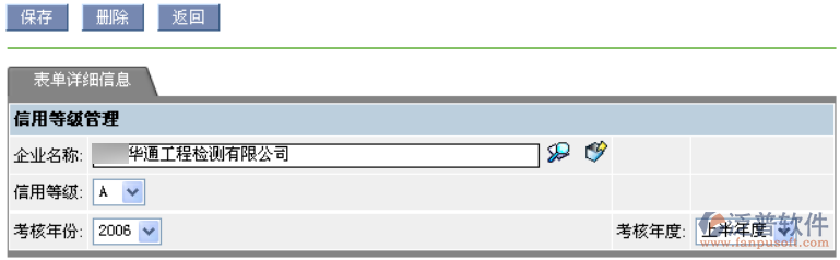 這個功能是對企業(yè)信用等級信息進行增加、刪除、修改操作,進入界面如下: