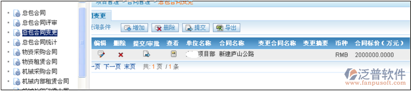 可以對(duì)本級(jí)及以下組織機(jī)構(gòu)中錄入審批通過(guò)的總包合同進(jìn)行變更,而且對(duì)一個(gè)合同可以在子表中反復(fù)增加進(jìn)行多次變更。