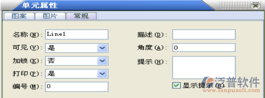 【元件屬性】包含圖案、圖片和常規(guī)三個(gè)功能設(shè)置。如下圖: