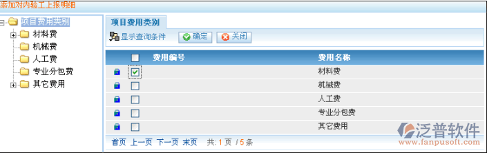步驟2 :選擇主表記錄,在子表對(duì)內(nèi)驗(yàn)工上報(bào)明細(xì)中,點(diǎn)擊“增加”,選擇費(fèi)用類別,如下圖所示: