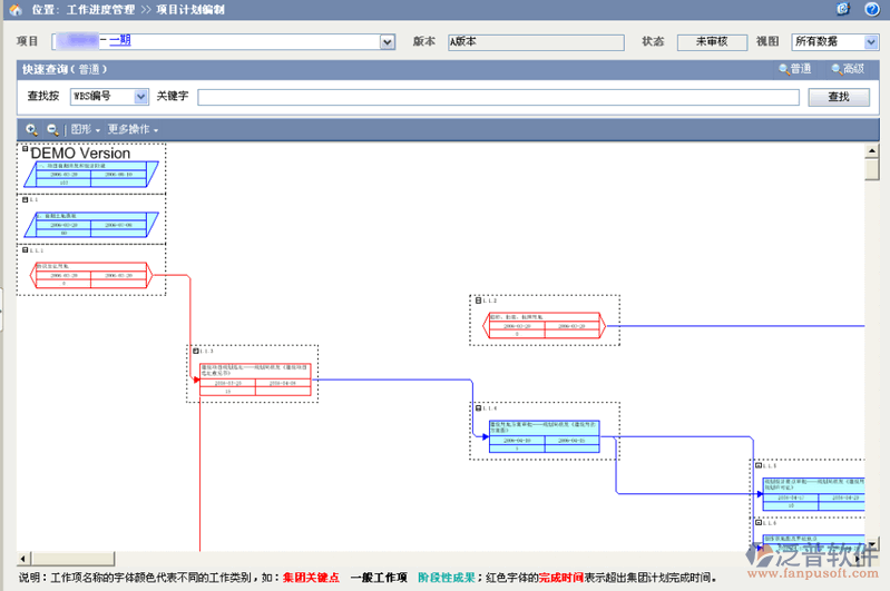 以甘特圖或網(wǎng)絡(luò)圖的形式反映項目的整體工作進度,每種圖都分別以標準樣式和標出關(guān)鍵路徑的樣式展示。