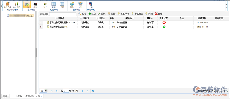 在頂部菜單中選擇【計(jì)劃管理】【控制計(jì)劃】,在用戶桌面顯示【控制計(jì)劃】頁面。