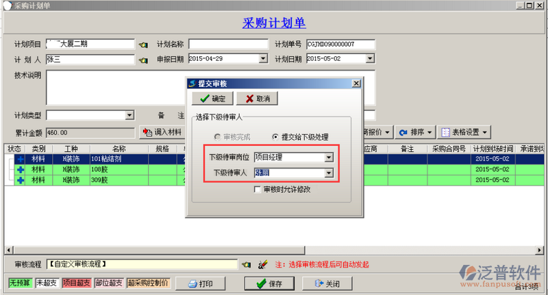 單據(jù)的創(chuàng)建人在發(fā)起審核的時候選擇“自定義審核”,確定之后選擇下一級審核人,如圖;