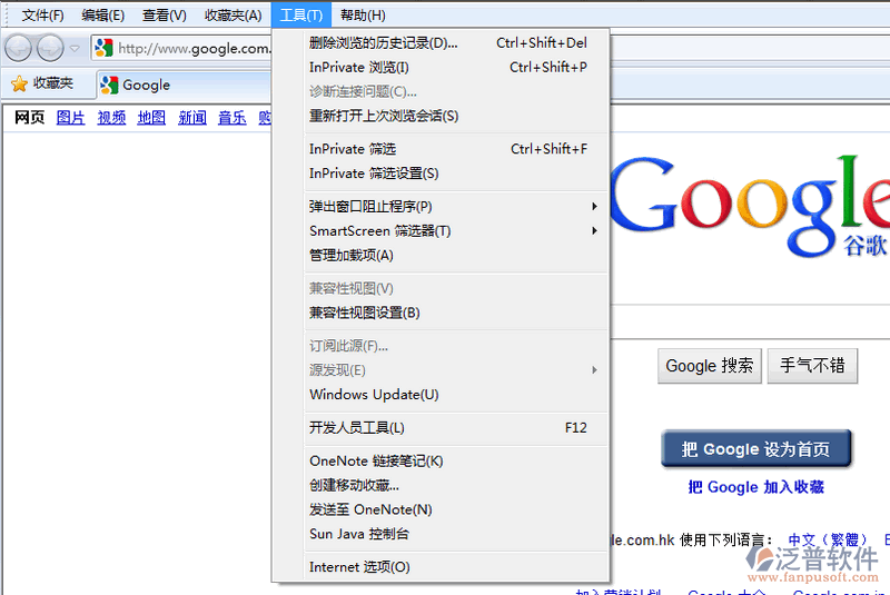 3、 打開IE瀏覽器,點(diǎn)擊菜單欄的“工具”,選擇“Internet選項(xiàng)”;