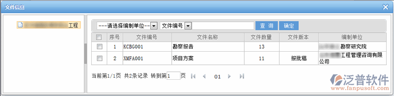 點(diǎn)擊【預(yù)可研】階段,【成果管理】中【文件發(fā)放】功能,頁面顯示如下: