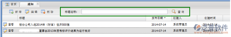 注意:在臺(tái)賬界面,可以根據(jù)查詢條件“標(biāo)題名稱”,查詢出符合條件的通知。
