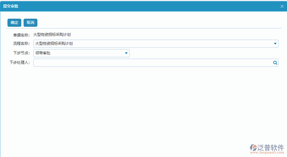 【提交審批】:可在此對當前大型物資招標采購計劃進行流程提交