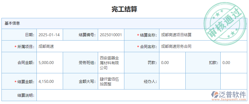 勞務(wù)班組上傳的勞務(wù)結(jié)算,由我們公司進(jìn)行審簽,之前約定好的合同數(shù)量,執(zhí)行的單價,就是最終確認(rèn)完工結(jié)算的金額,如果有工程量的變動或者其他變更的情況,就由完工結(jié)算進(jìn)行審查。