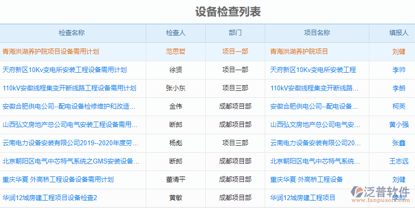 三、泛普軟件路橋工程管理系統(tǒng)的項目設備管理列表詳情