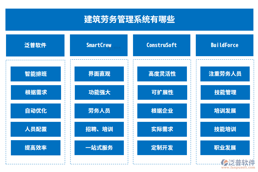 除了泛普軟件外,市場上還有其他一些知名的建筑勞務(wù)管理系統(tǒng)品牌: