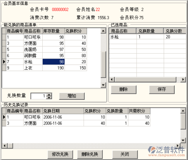 在泛普會員管理系統(tǒng)中,可以對會員消費(fèi)情況做增刪改查操作。具體操作見下文。