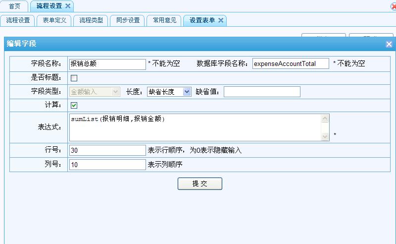 設置表單的所有字段的名稱,字段類型、顯示位置的行號/列號等。