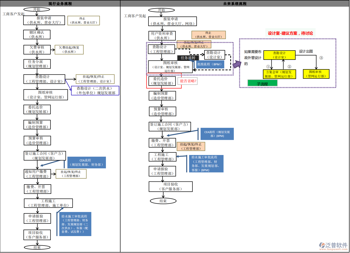 6)規(guī)劃發(fā)展部提交報(bào)價(jià)給客戶,客戶確認(rèn)后并與其簽訂施工合同和用水合同;